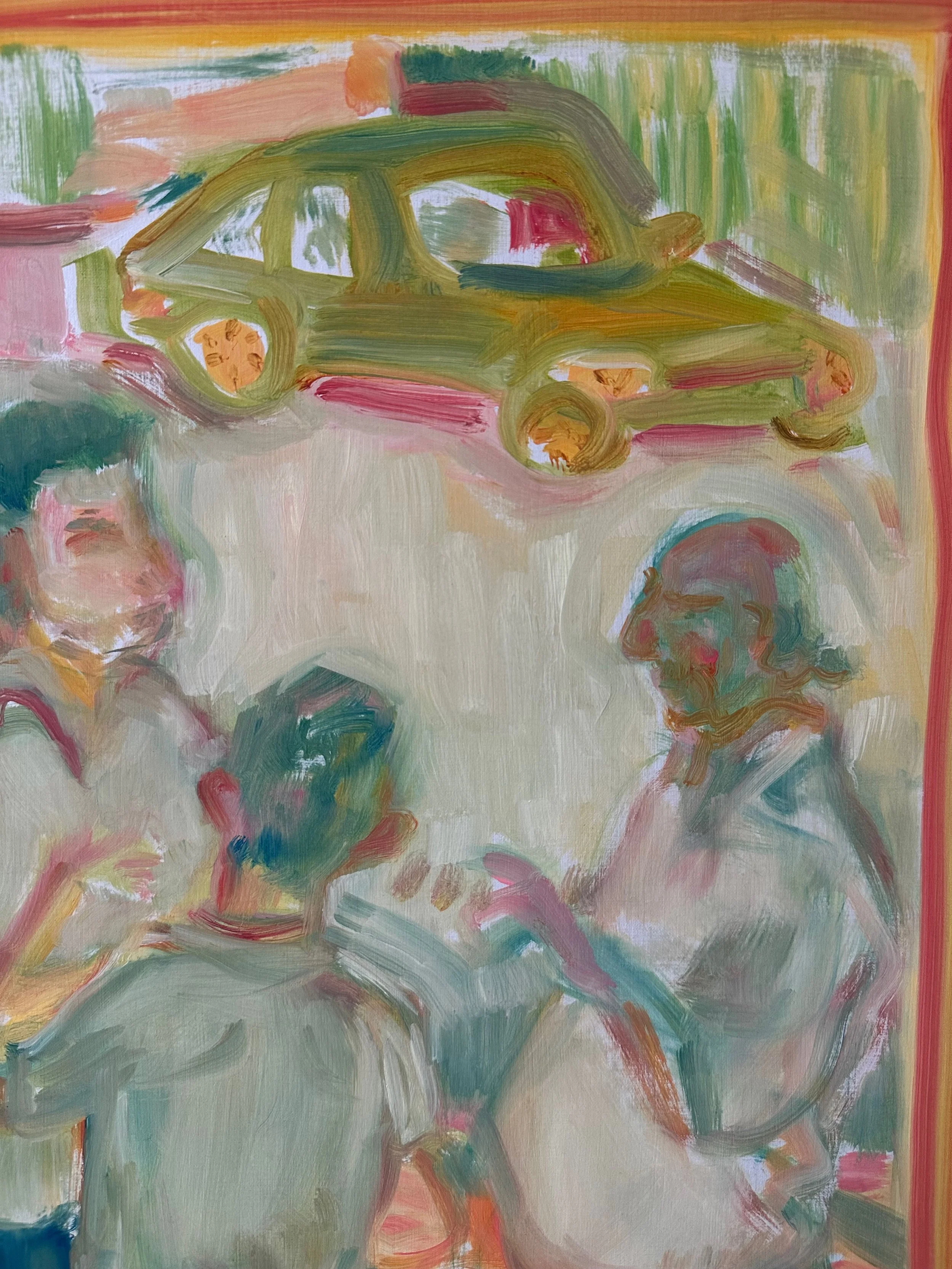 The title is a nod to the Spanish idiom with a double entendre: a cup is being filled in the literal sense but at the same time it suggests that someone has had enough… “Se le va llenando la copa a uno” (i.e. “I’ve had enough of your antics”) is a stern warning I often heard from my parents throughout my childhood. In this painted homage, I’ve turned one of their favorite parenting catchphrases on them—transforming it into a humorous commentary on marriage and family.